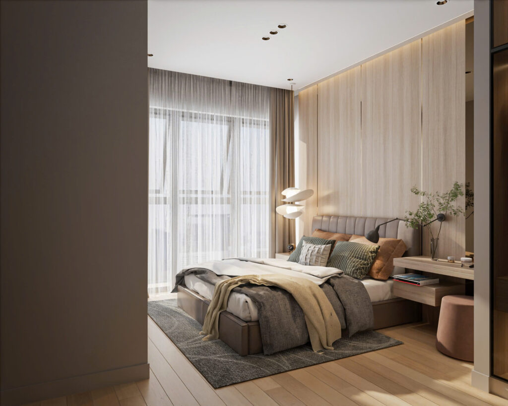 phòng ngủ lớn thiết kế nội thất căn hộ đương đại