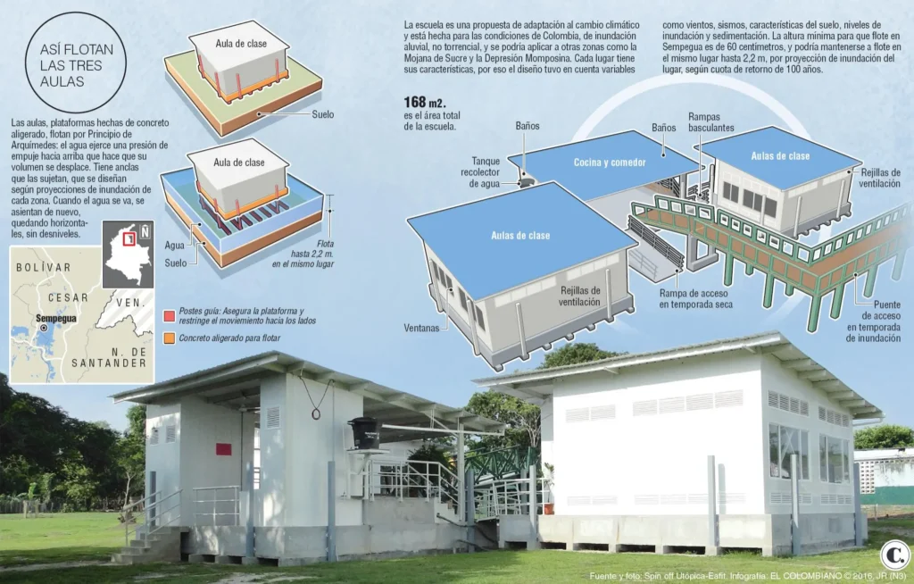 - Những công trình nổi này đảm bảo khả năng tiếp cận giáo dục trong thời gian lũ lụt, triều cường bất chấp những thách thức về môi trường.